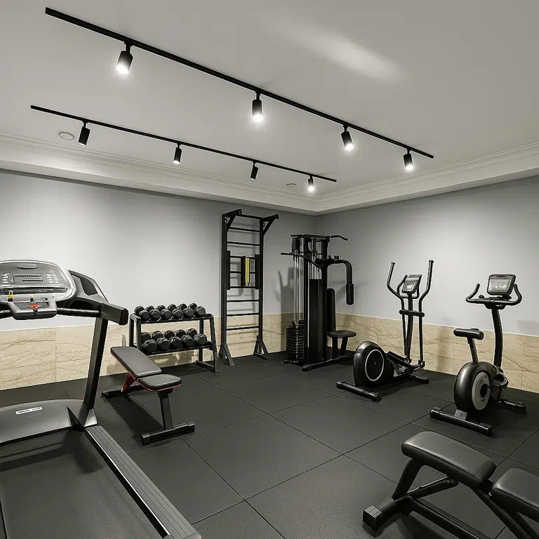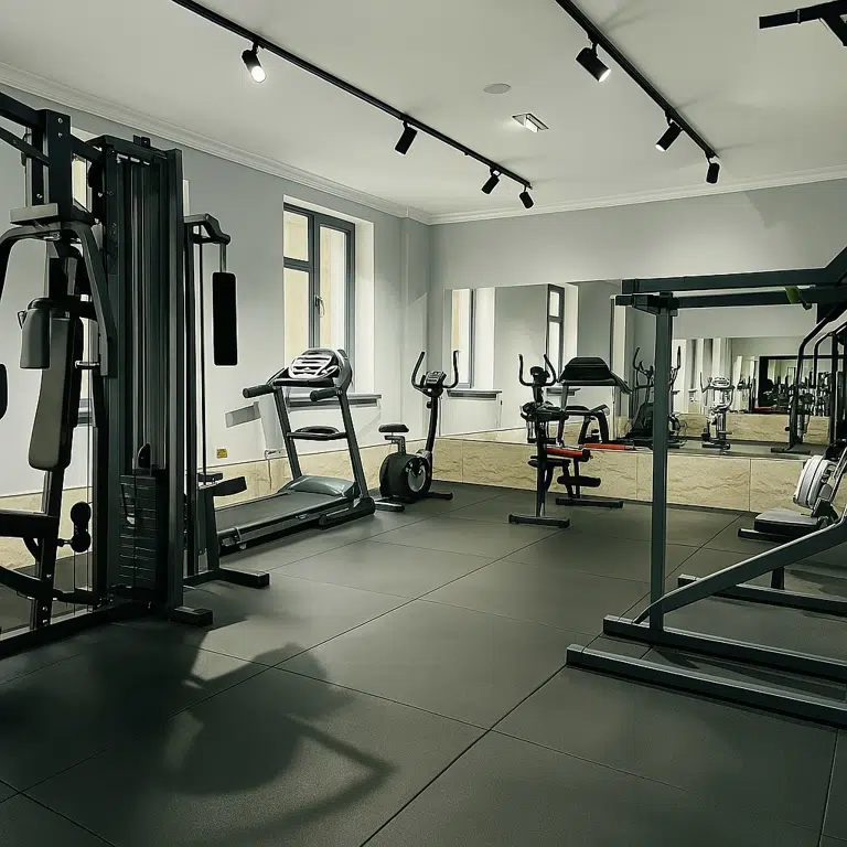 Фитнес-зал в Porto Bello Hotel — современное пространство для поддержания силы и баланса, оснащённое всем необходимым для тренировок и зарядки энергией на весь день.
